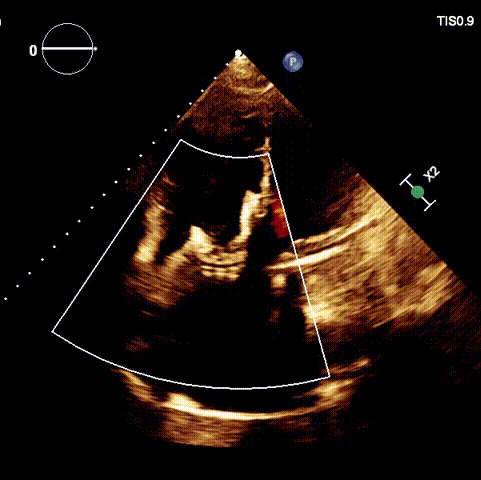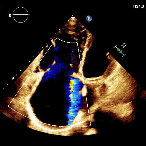 1.二尖瓣位機械瓣位置及功能未見異常;2.雙房及右室明顯擴大(左房收縮容積115ml,右房收縮容積370ml,右室中段左右徑65mm,右室FAC37%),下腔靜脈及冠狀靜脈竇擴張(下腔靜脈直徑44mm,冠狀靜脈竇直徑22mm);3.極重度三尖瓣反流(FTR 6+)。