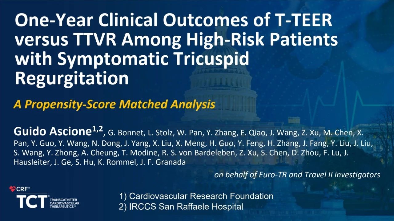 來自美國心血管研究基金會(Cardiovascular Research Foundation, New York, U.S.)的Guido Ascione博士進(jìn)行了一項(xiàng)有癥狀的三尖瓣返流高?;颊逿-TEER與TTVR的一年臨床結(jié)果:傾向評分匹配分析,他在分析后發(fā)現(xiàn),三尖瓣置換(TTVR)相對于緣對緣修復(fù)(T-TEER)有著更高的手術(shù)成功率,且一年后的臨床結(jié)果和功能評分中,置換和緣對緣相比并無統(tǒng)計學(xué)差異。