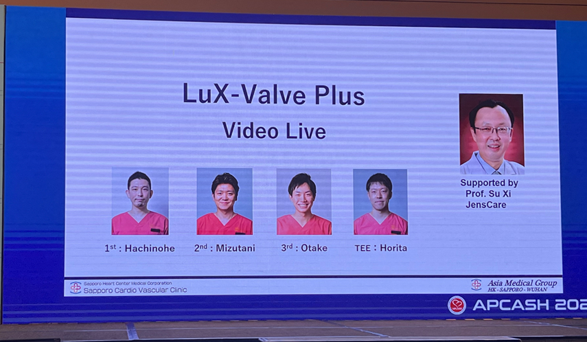 日本札幌心血管醫(yī)院的Daisuke Hachinohe教授分享了一例同武漢亞洲心臟病醫(yī)院(Wuhan Asian Heart Hospital, Whan, China)的蘇晞(Xi SU)院長(zhǎng)聯(lián)手進(jìn)行的 LuX-Valve Plus 病例,詳細(xì)展示了經(jīng)導(dǎo)管三尖瓣置換的操作步驟和技術(shù)要點(diǎn)。這也是 LuX-Valve Plus 在日本的首例植入。Hachinohe教授稱贊 LuX-Valve Plus 將成為日本三尖瓣反流治療的game changer。